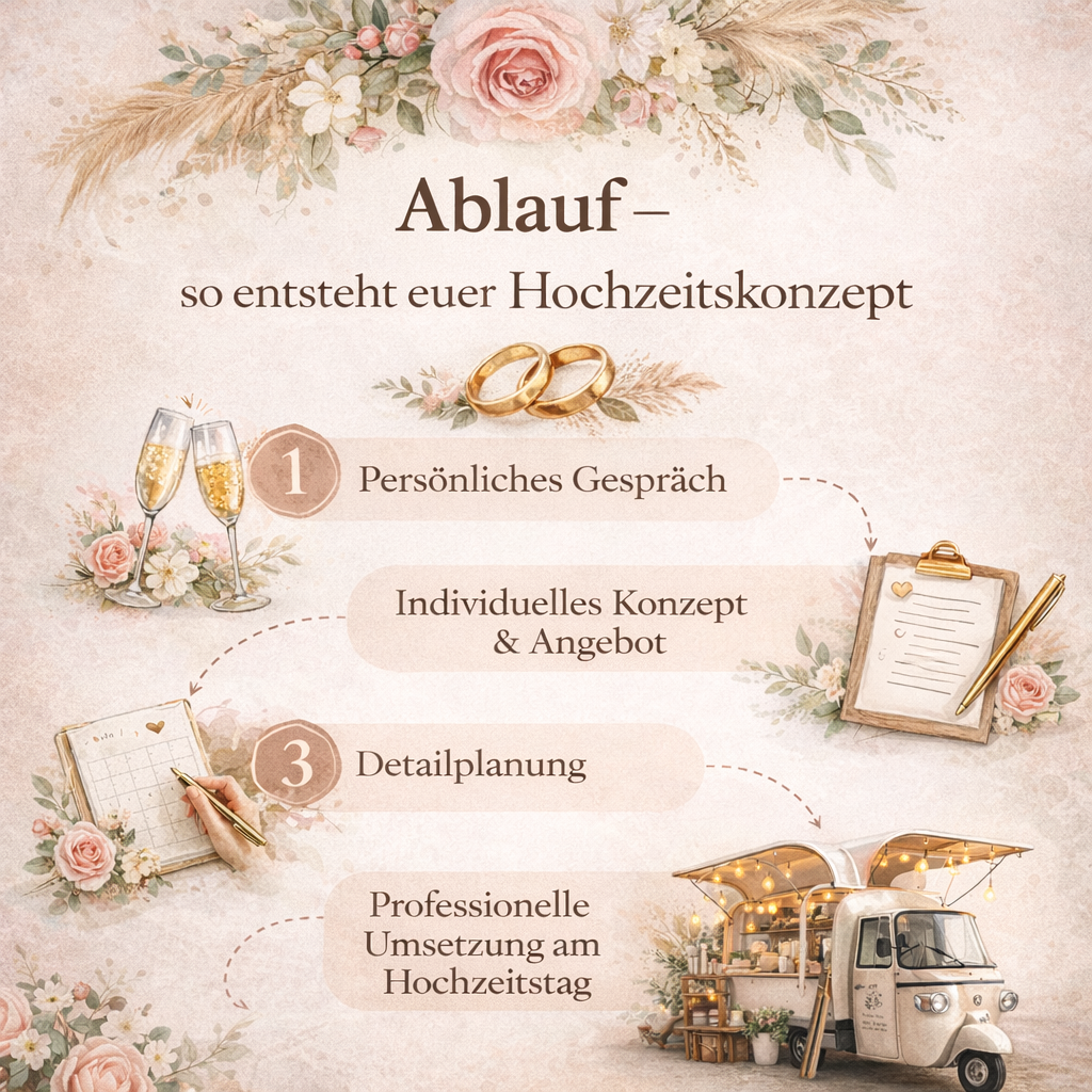 Wir nehmen uns Zeit für eure Wünsche und entwickeln gemeinsam ein Konzept, das zu euch als Paar passt.